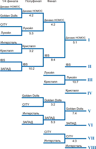 Динамо НОМОС: Бегунов, Ларионов, Вараксин, Захаров, Шахмельян, Дольников, Андрусенко, Крутиков, С. Бирюков, И. Бирюков.
